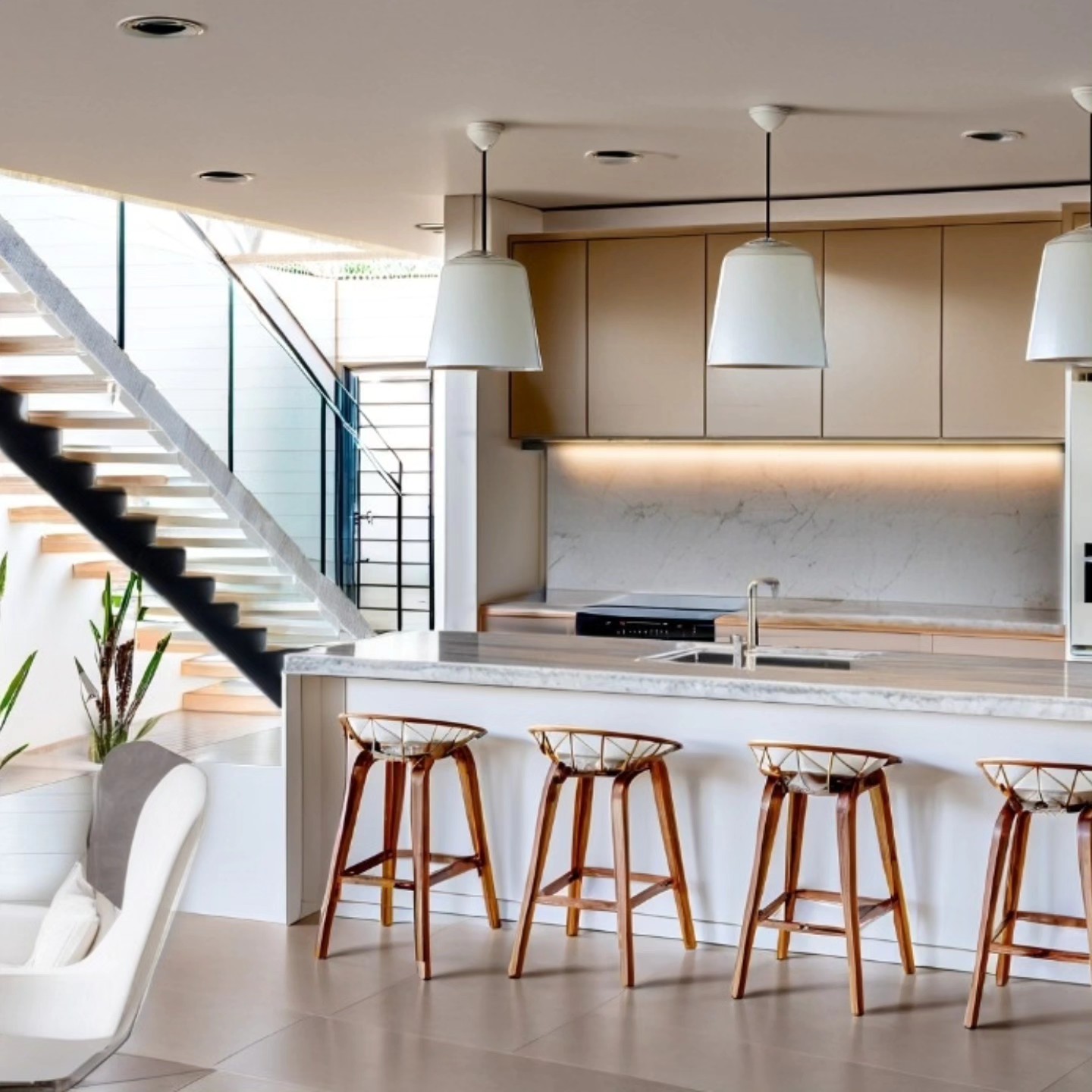 Segundo Nivel: dormitorios con baño completo cada uno y sala familiar.