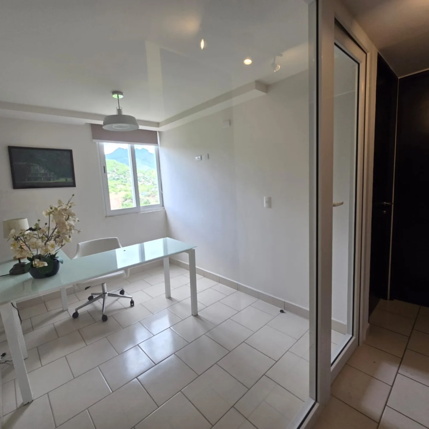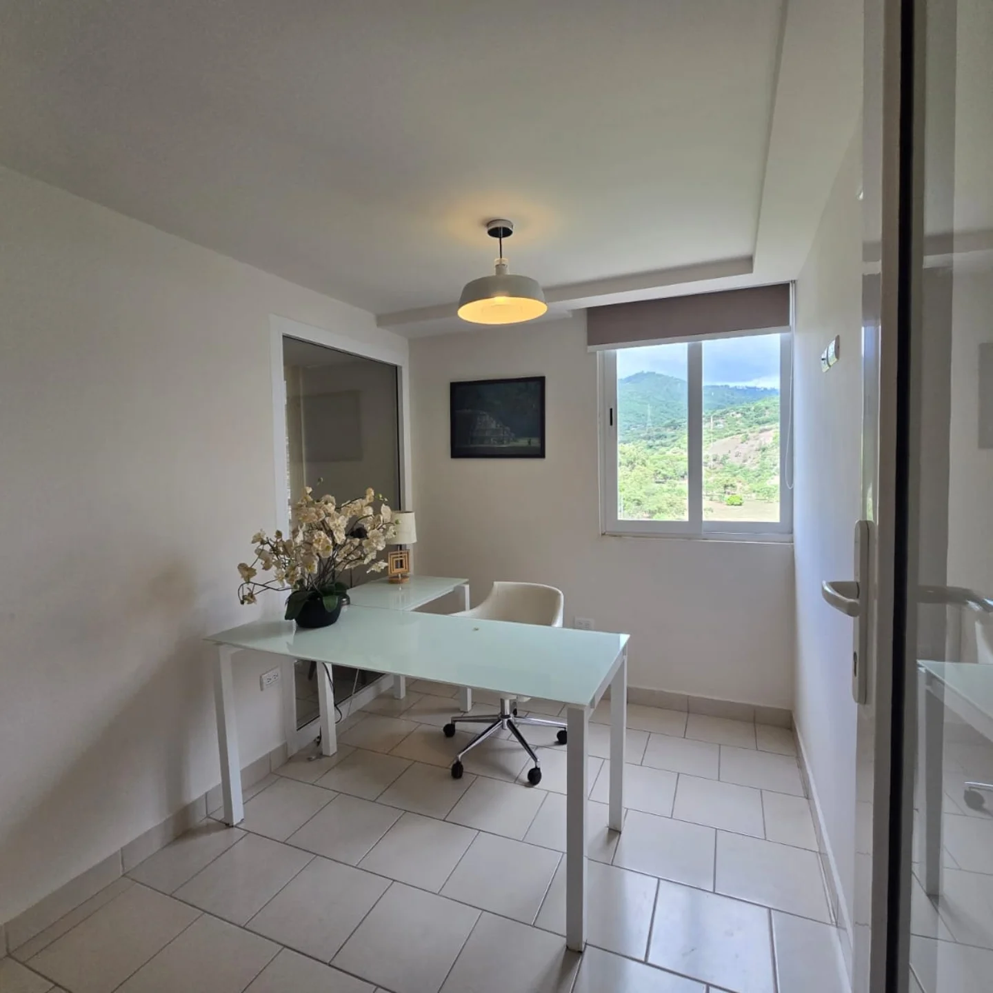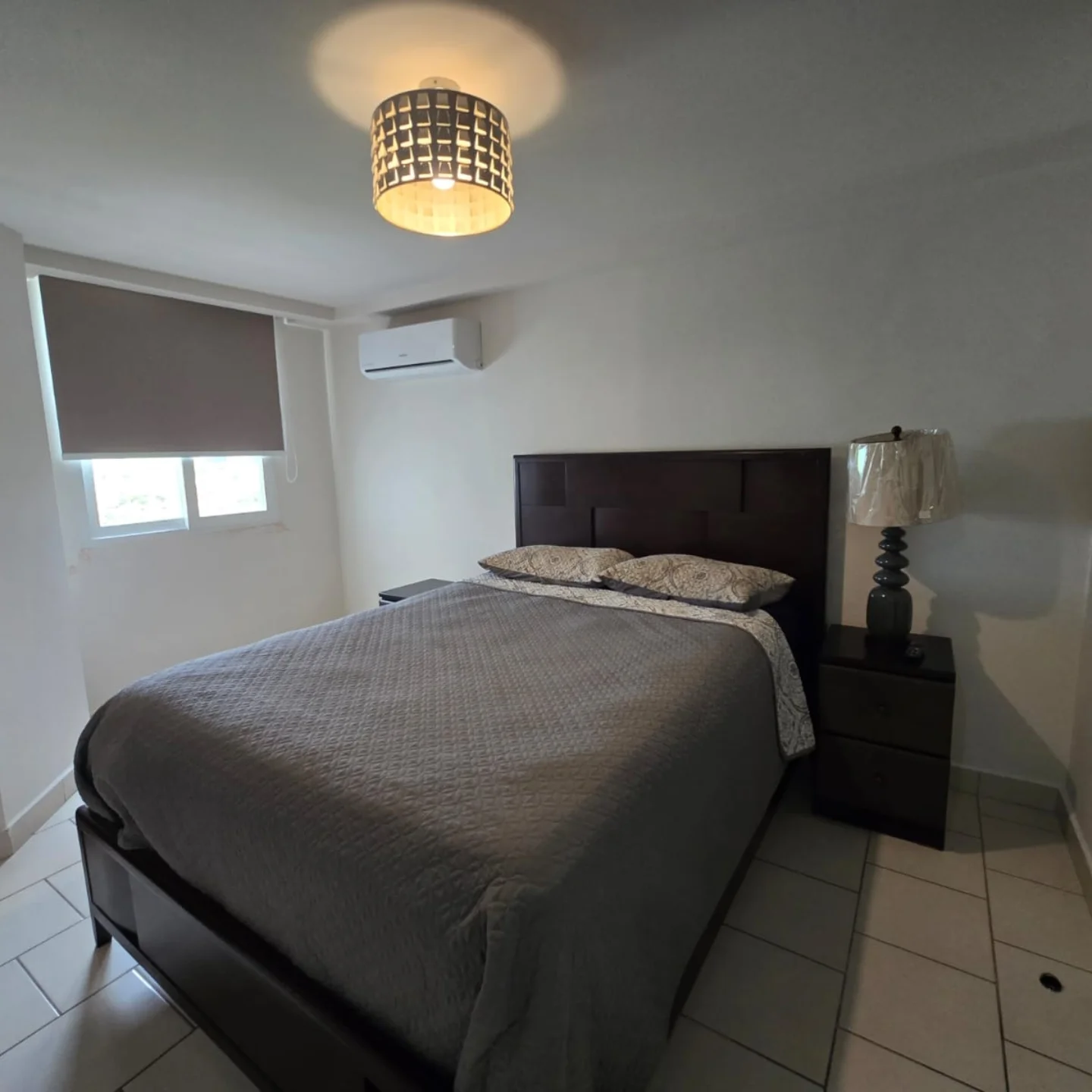 Consta de: 2 habitaciones, 1 estudio, 2 baños, sala, comedor, cocina, terraza, area de lavandería, aire acondicionado, estacionamiento.