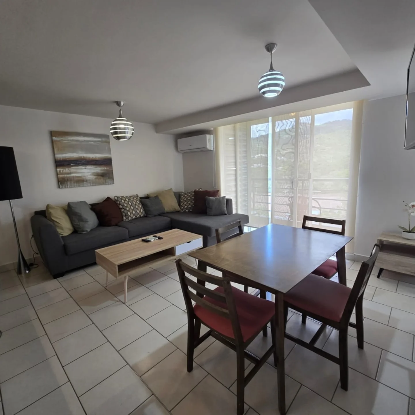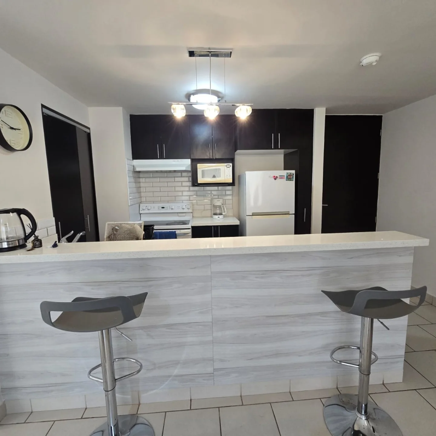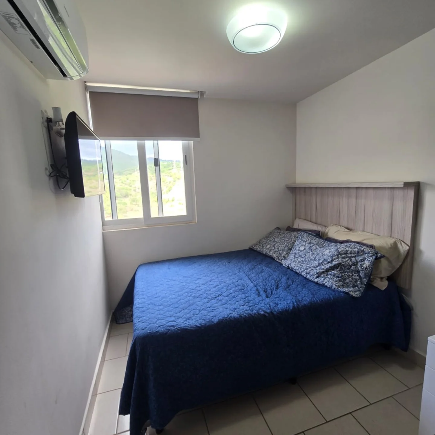 Consta de: 2 habitaciones, 1 estudio, 2 baños, sala, comedor, cocina, terraza, area de lavandería, aire acondicionado, estacionamiento.
