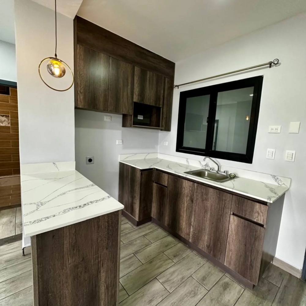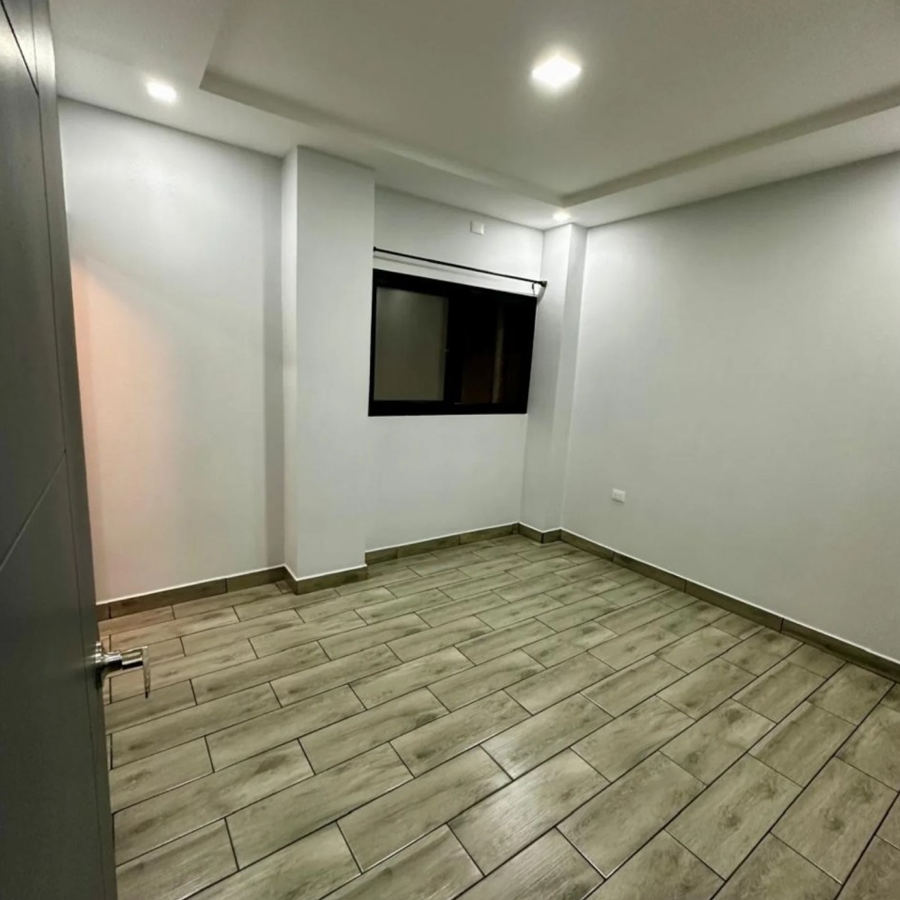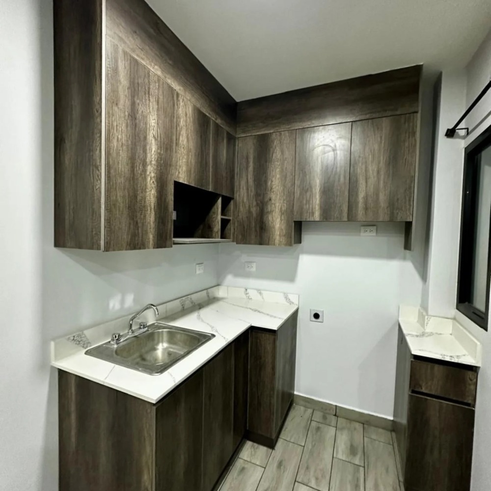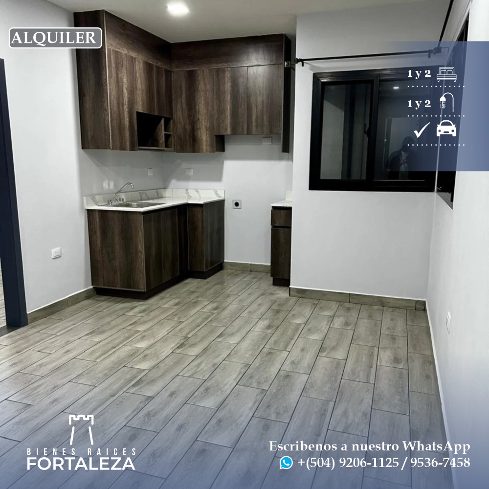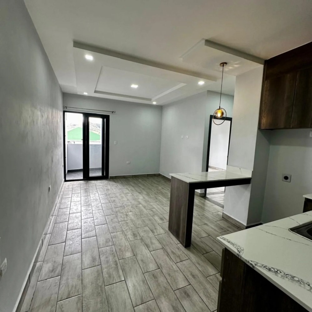 Apartamento de dos habitaciones, consta de: sala, comedor, cocina, dos habitaciones, un baño, intercomunicador, un estacionamiento.