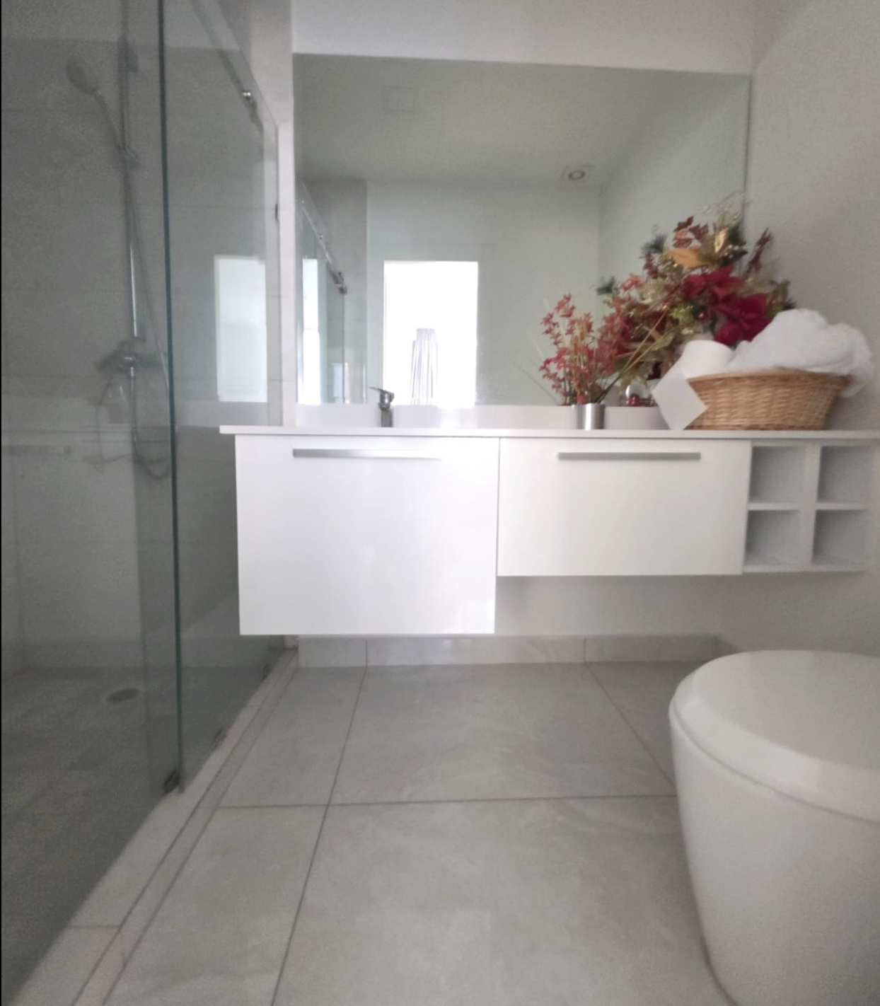 Consta de: sala, comedor, cocina, baño de visita, área de lavandería, 2 habitaciones (habitación principal con walking closet + closet y baño privado, habitación secundaria con su closet y baño privado) estacionamiento para dos vehículos