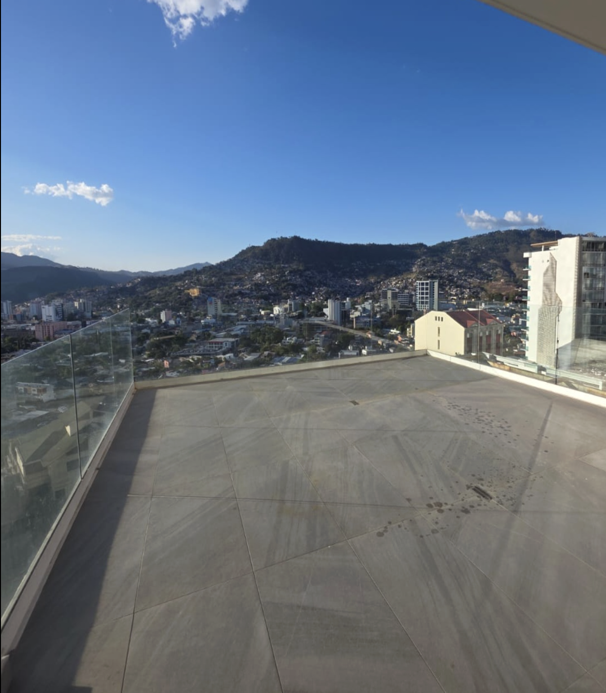 Amplia terraza con una vista espectacular, área social, gimnasio, piscina, salón para ventos y área de juego para niños.