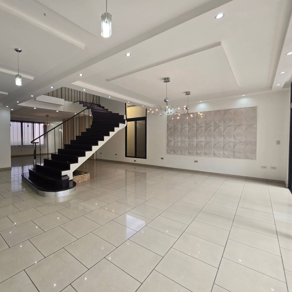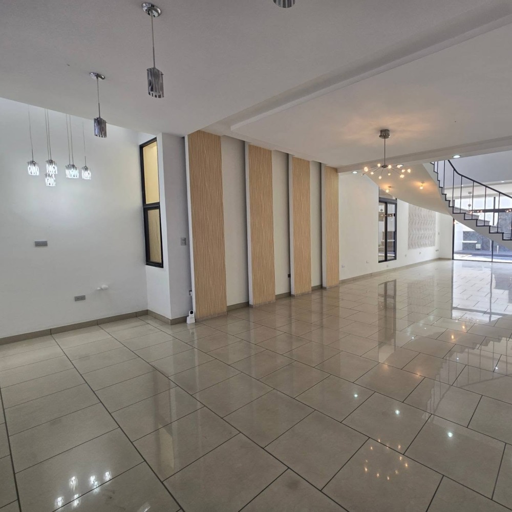 Sala, comedor, cocina + alacena, baño de visitas completo, estudio, área social, piscina (obra gris), jacuzzi, área techada para eventos, baño completo, área de lavandería, 3 bodegas, 4 estacionamientos, cuarto de empleada, cisterna de 10,000 galones.
