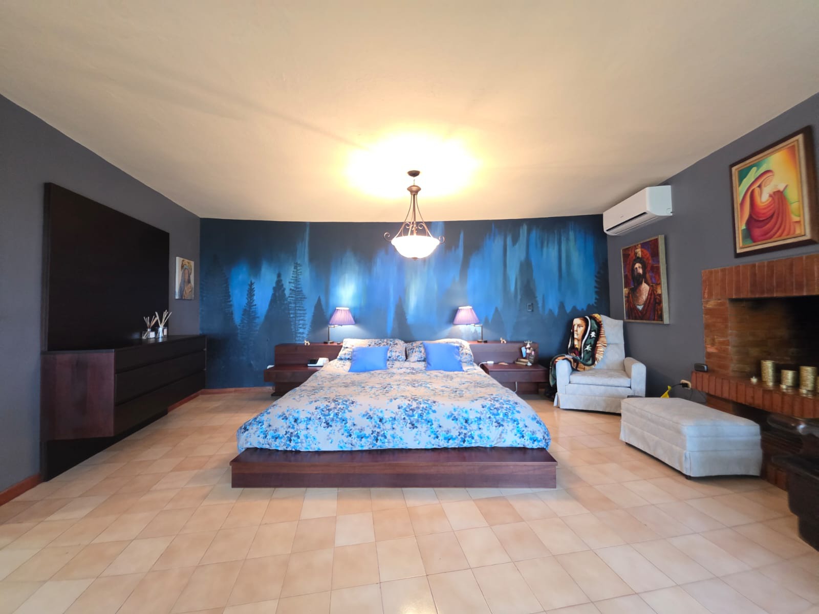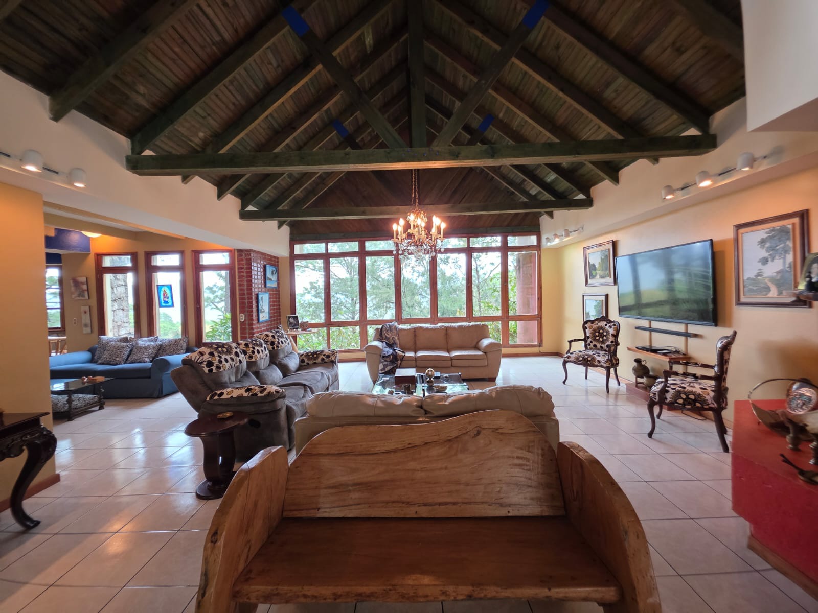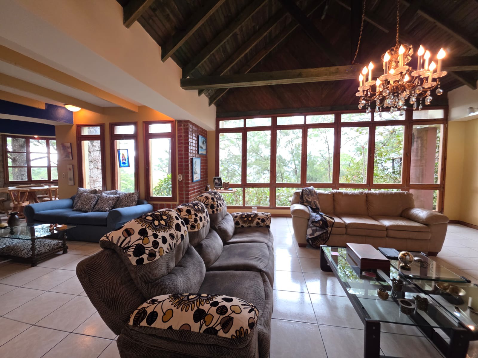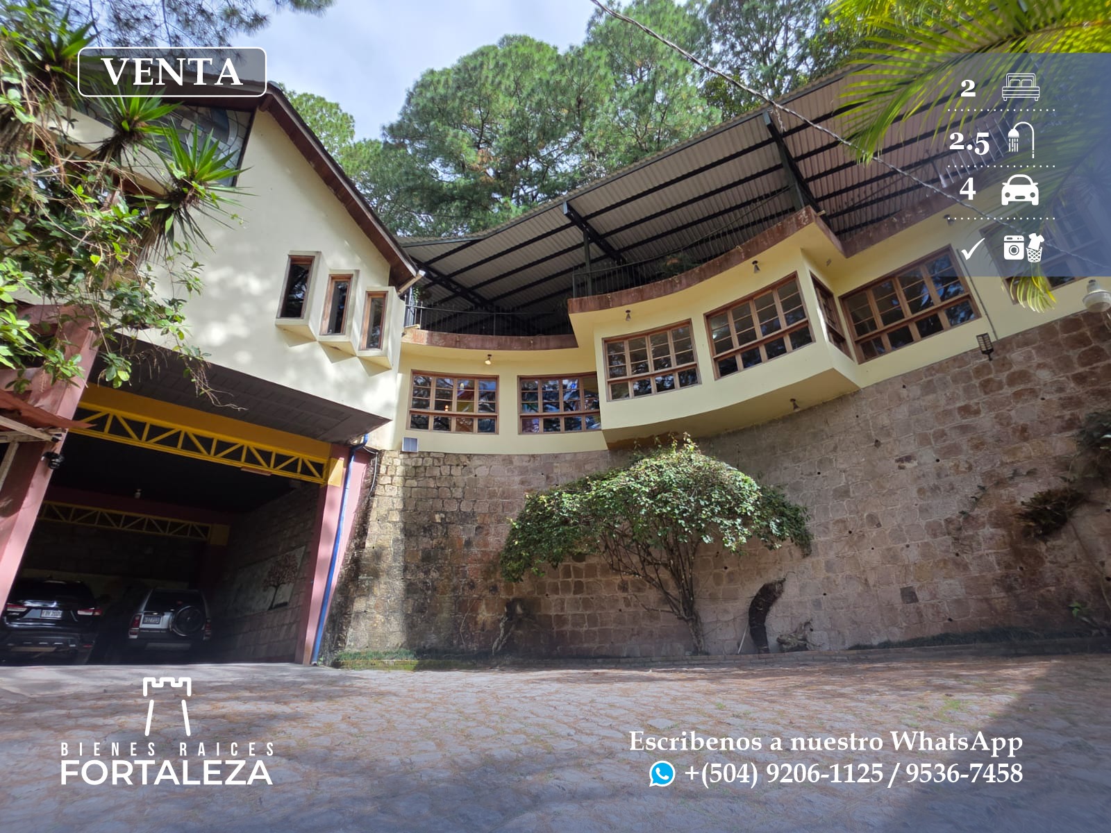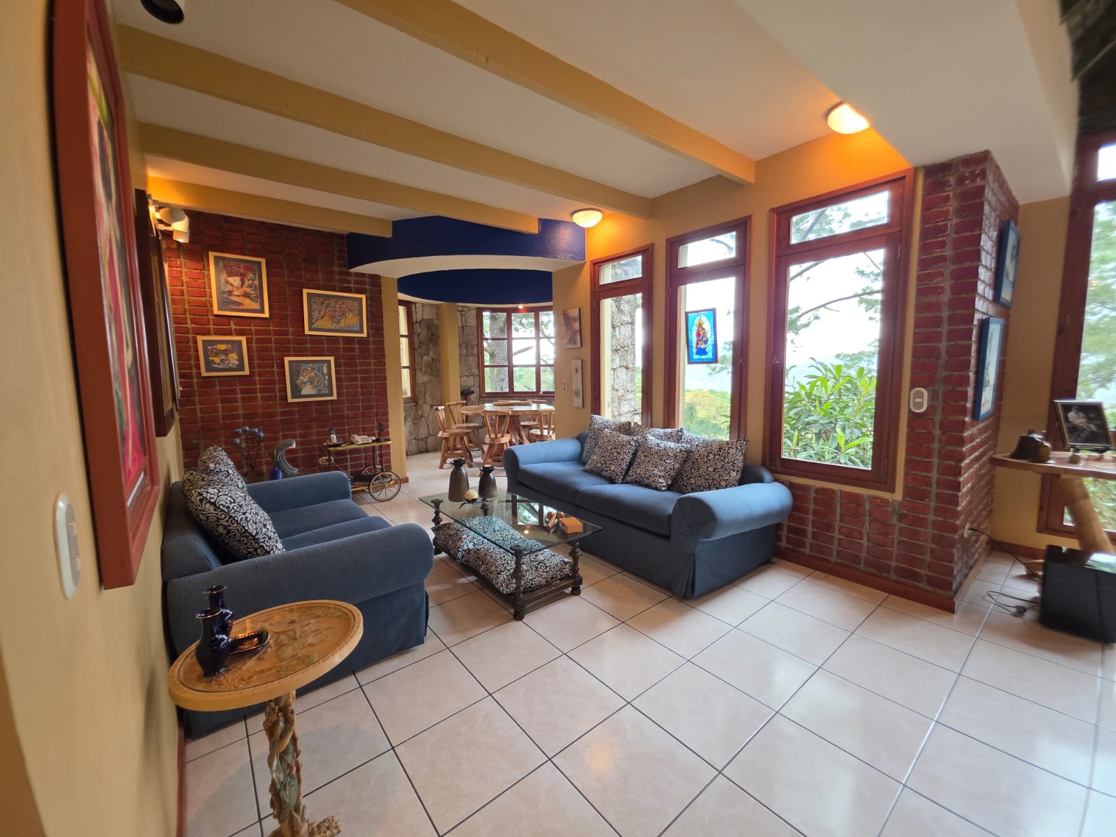 Segundo nivel: área social, sala con chimenea, sala de estar, comedor, cocina, cuarto de servidumbre con su baño, área de lavandería, cuarto secundario con su baño, closet y aire acondicionado, baño de visita, cuarto principal con su baño, walking closets y aire acondicionado.